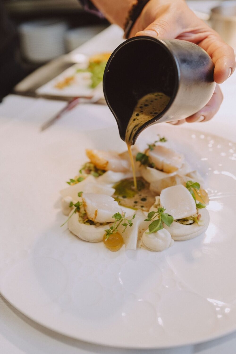 In Kroatien pflegen wir seit über drei Generationen Land mit ca. 10.000 Olivenbäumen von denen jährlich 200 dazukommen, ohne jegliche Verwendung von Pestiziden oder künstlichen Pflanzenmitteln. Als Resultat daraus ergibt sich ein wunderschönes kalt-gepresstes Olivenöl welches mithilfe von dort ansäßigen Dorfbewohnern unter der Berücksichtigung sozial sowie ökologisch nachhaltiger Aspekte bei uns in der Küche seine Verwendung findet. 700 Mandel-Bäume, ca. 300 Walnussbäume sowie viele weitere Arten gehören zu unserem Portfolio Nachhaltiger Ambitionen und Ziele und viele weitere Folgen. Unsere Gerichte auf der Speisekarte basieren vorwiegend auf die Zusammenarbeit regionaler sowie umliegender Lieferanten. Das Gemüse beziehen wir von der Pfälzer Markthalle die vorwiegend mit regionalen Bauern zusammenarbeitet, den Fisch beziehen wir von unserem langjährigen Partner Südfisch, von dem ausschließlich Label-Rouge Produkte bezogen werden: Fische, Geflügel etc.