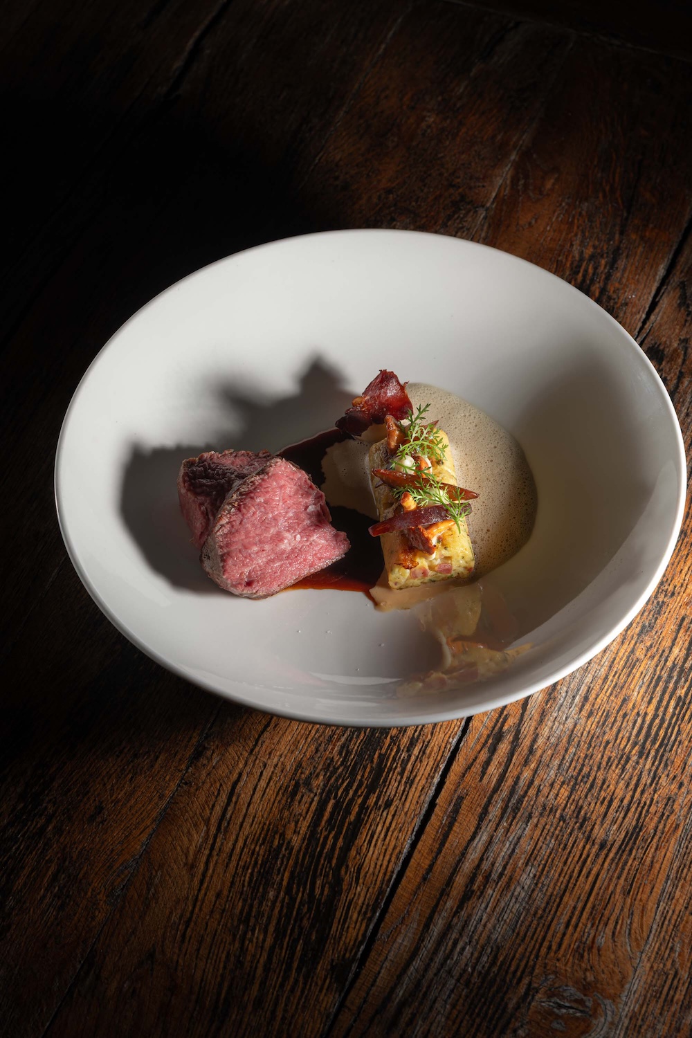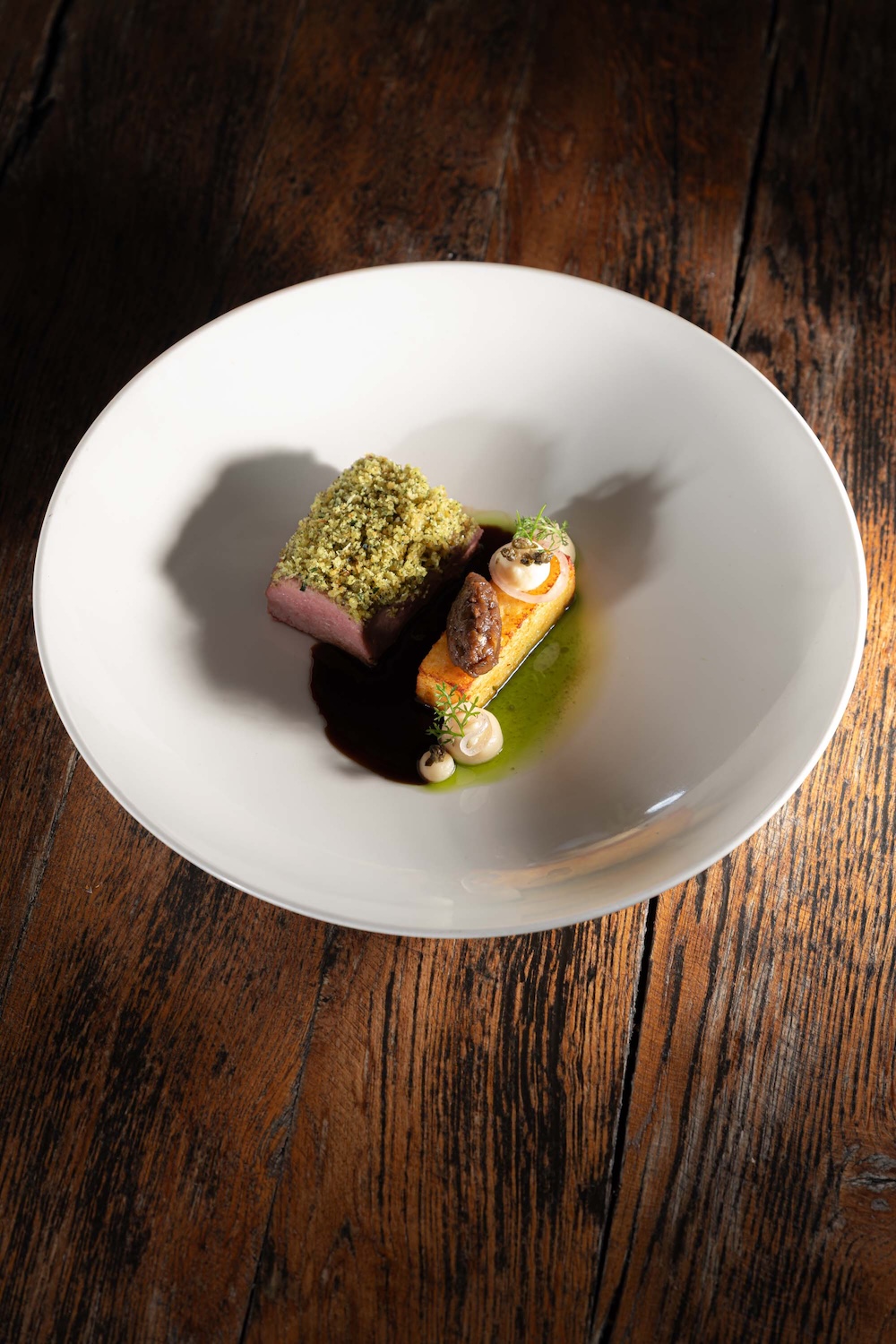 Rosa gebratenes Rehrückenfilet aus heimischer Jagd | Kohlrabi | Portwein - Brombeeren | Piemontesische Nuss-Schmelze | Semmel - Knödel | Preiselbeer-Reduktion
